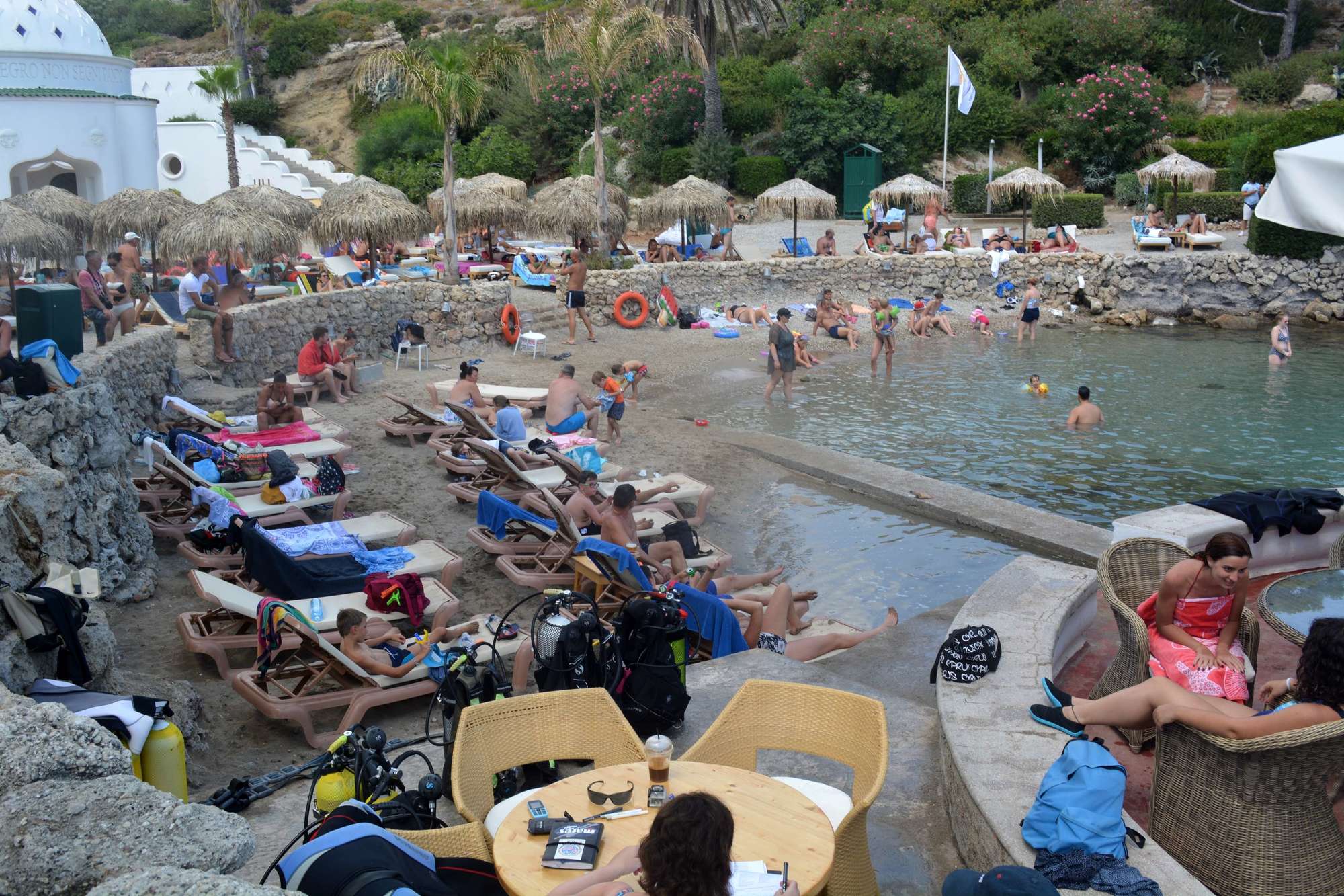 9. Север Родоса. Elli Beach. За зданием аквариума расположены городские пляжи. Elli Beach- наиболее красивый из них. Это галечный пляж с самой знаменитой на Родосе вышкой для ныряния.Пляж многолюдный, поэтому подойдет для любителей общения и компаний.